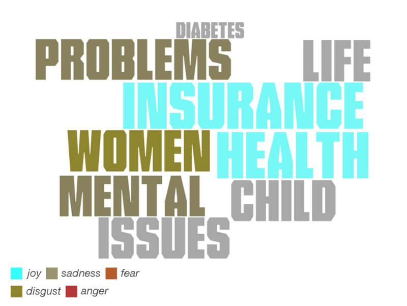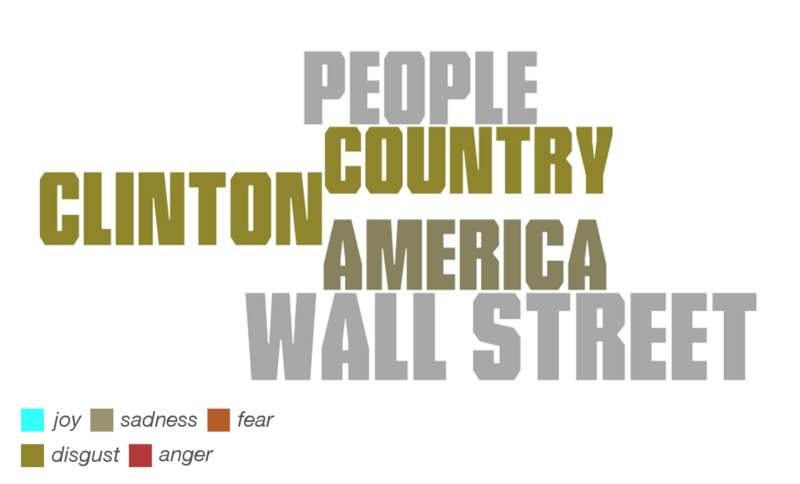Hillary Clinton’s care-related vocabulary included terms such as women (used with disgust, probably in the context of gender equality), children, insurance and health (both presented positively).